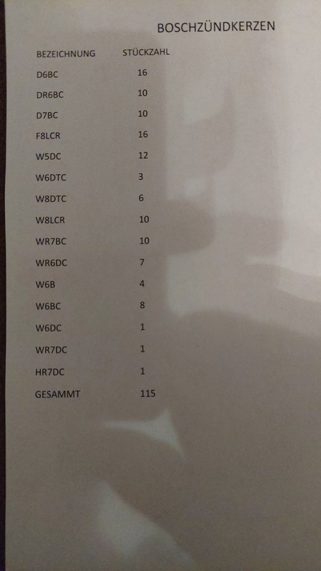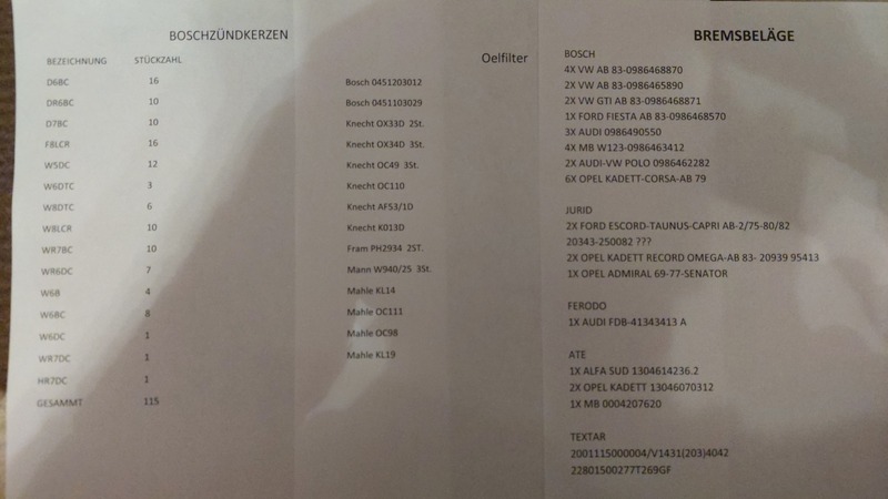 Alles Neuteile. Bremsbeläge 200 € Zündkerzen 115 € Ölfilter 100 €