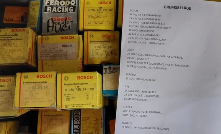 Bremsbeläge, Zündkerzen, Ölfilter.