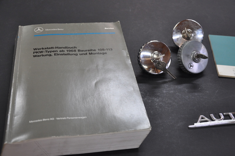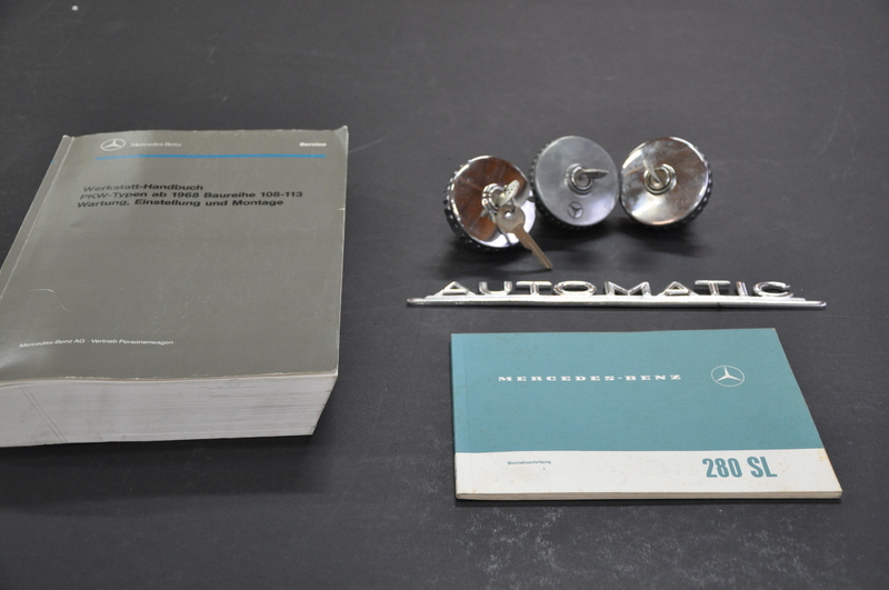 für Pagode: Scheibenwischermotor guter Zustand, Original Werkstatthandbuch, drei Tankdeckel mit Schlüssel