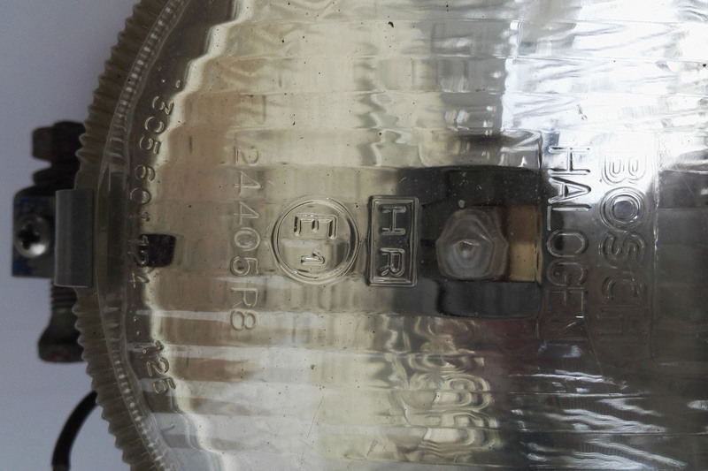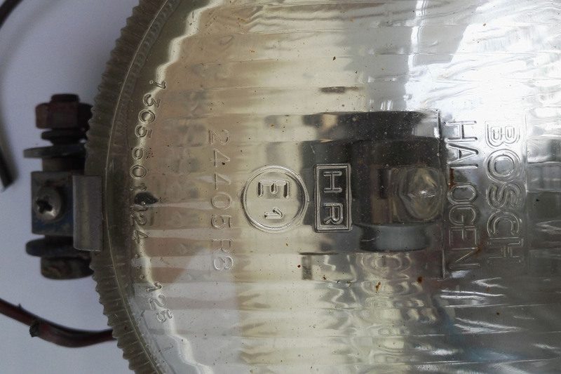 Gläser: Verhältnismäßig guter, altersentsprechender Erhaltungsgrad ca. 40 - 50 Jahre alter Scheinwerfer, kaum vergilbt und kaum (und wenn minimaler) Steinschlag. An einem Scheinwerfer im unteren Drittel zur Seite hin ca. 3,5 cm langer, etwas tieferer Kratzer, (keine Schramme).