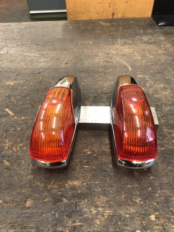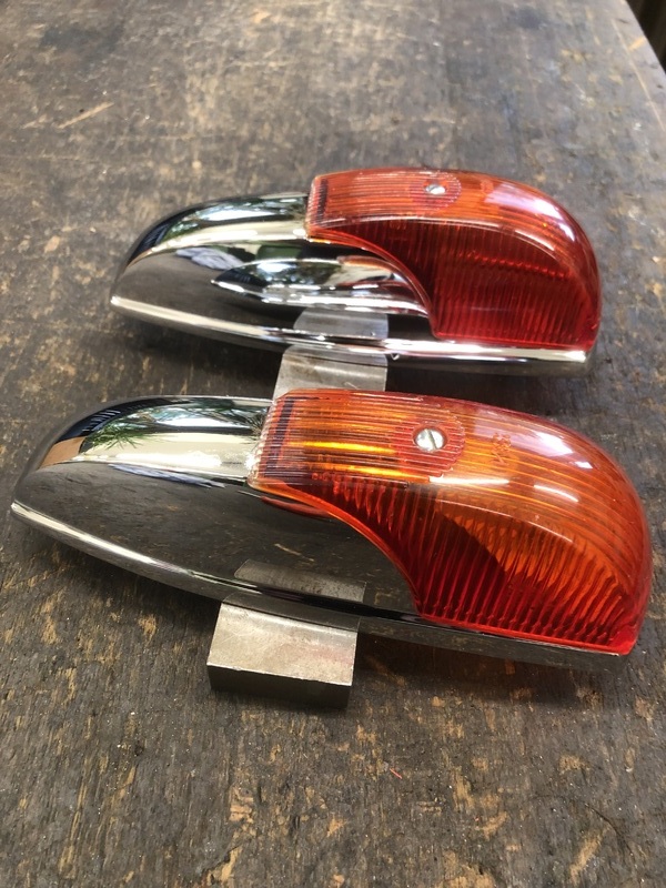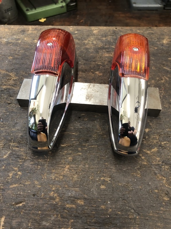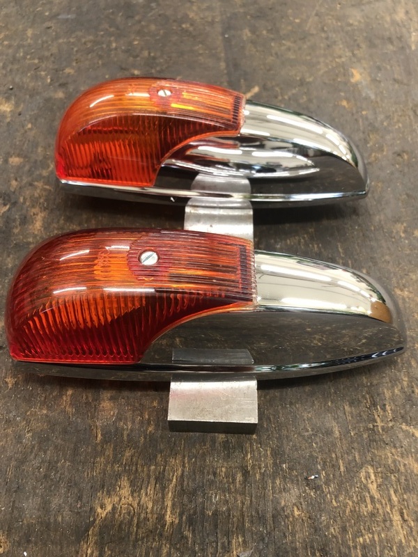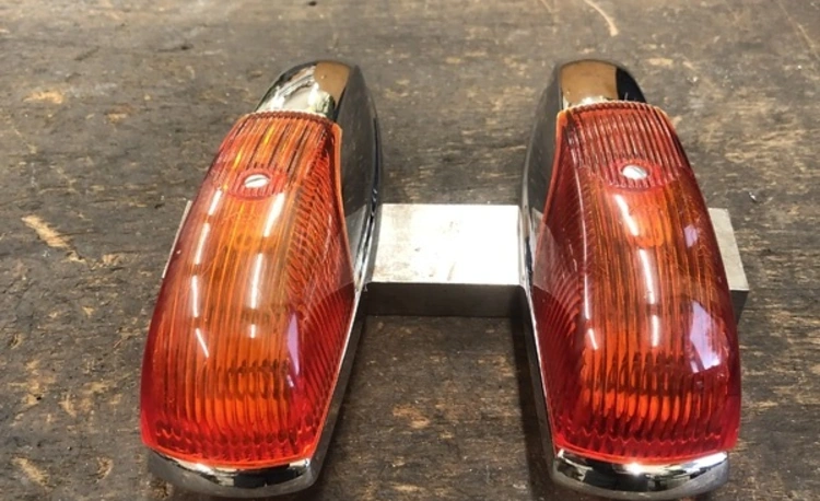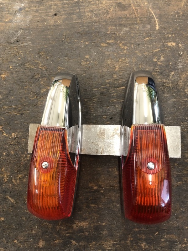 Linke und rechte Blinkleuchte für die Adenauer Modelle 300b und 300c aus alten Lagerbestand. Die Chromrahmen sind mal neu verchromt wurden und befinden sich im Top Zustand, Gläser sind neuwertig und Elektrik-Teile sind gebraucht .