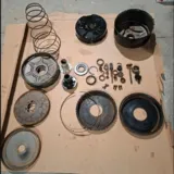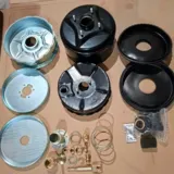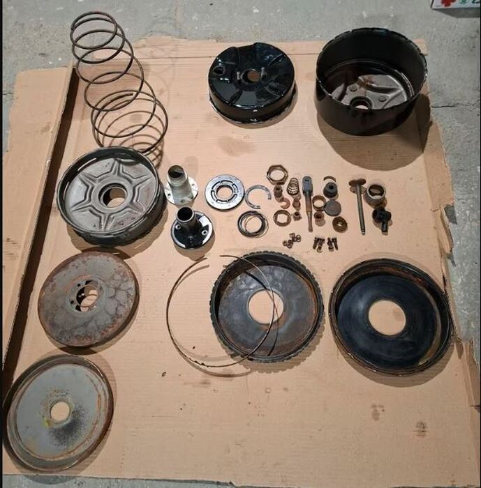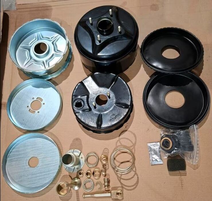 Sämtliche Teile galvanisch verzinkt und beide Gehäusehälften zus. pulverbeschichtet/oder lackiert. Anbei Foto eines zerlegten gebrauchten BKV, das zeigt, dass dies unbedingt erforderlich ist. Unbehandelte Metallteile werden weiter rosten, ein Aufbau mit neuen Gummiteilen somit sinnlos!