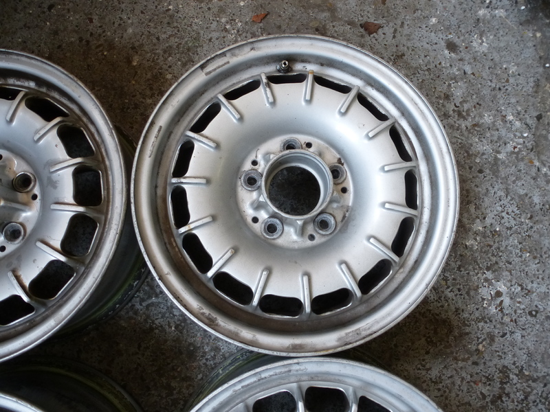 Mercedes W116 Alufelgen Barock-Design, guter Zustand, siehe Fotos, mit Alters- und Gebrauchsspuren. Versand je 12 Euro pro Felge da nur Einzelversand möglich. Kein PP