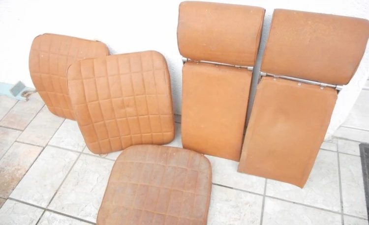 original ca. aus den 60er Jahren , hellbraunes Kuntleder, gut erhalten aber vom langen Lagern verschmutzt zum aufarbeiten. damalige Luxusausstattung für Oldtimer , selten und in der Zusammenstellung  heute nicht mehr zu finden.