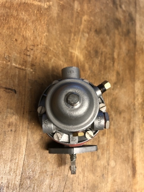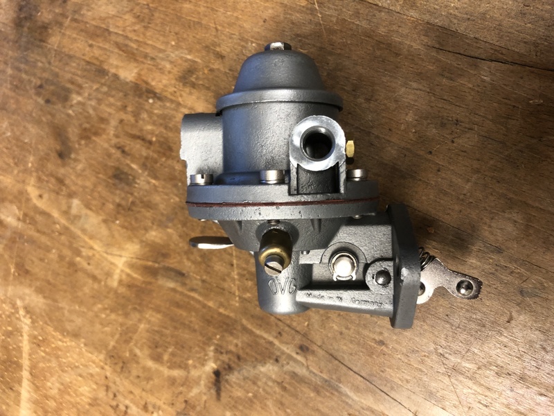 Originale Benzinpumpe für die Mercedesmodelle der 50-60er Jahre aus alten Lagerbestand. Es ist die frühe Ausführung mit Luftfilter und ist komplett überholt. Sie kann auch in anderen Modellen wie 220 W187 , 190SL W121 , Ponton W120 , W105 , W180 , Heckflosse W111 sowie anderen Modellen von BMW , Opel , Ford usw.