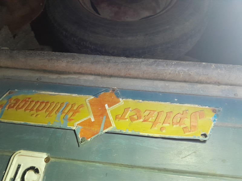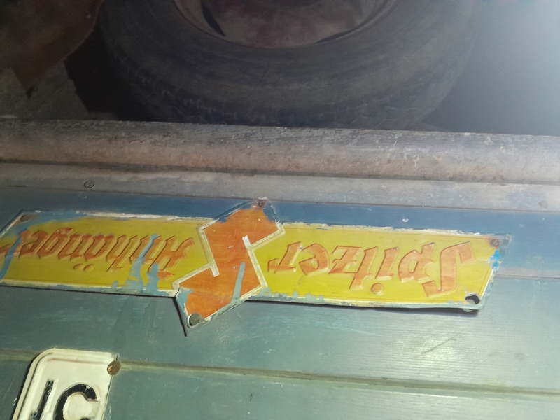 Suche 3 gut erhaltene Schilder des Anhänger-Herstellers "Spitzer-Anhänger" aus den Jahren 1950-1960.