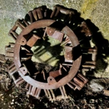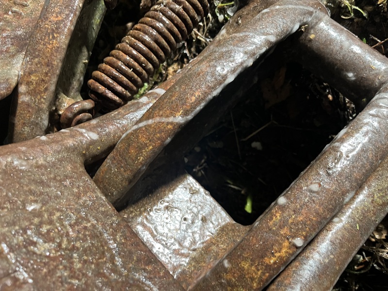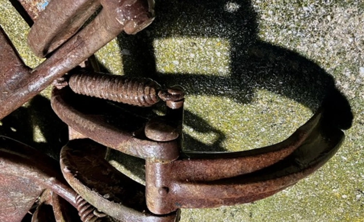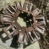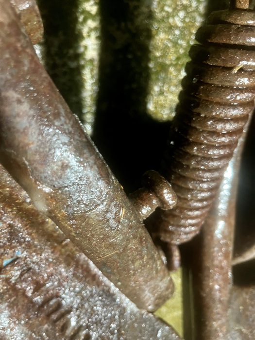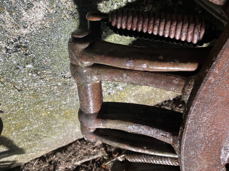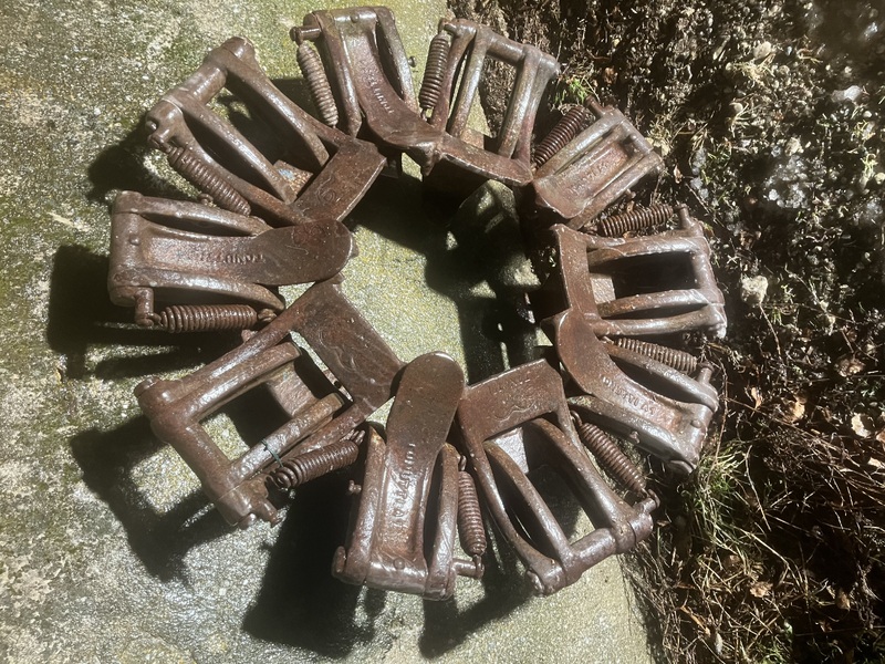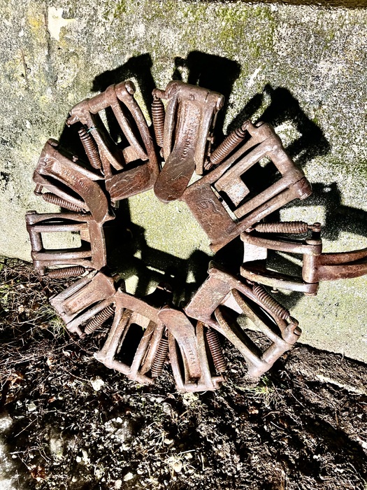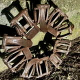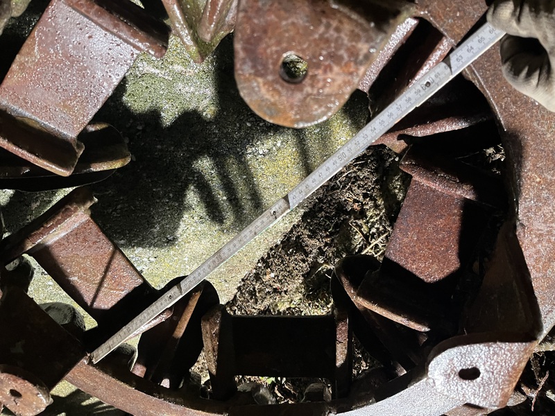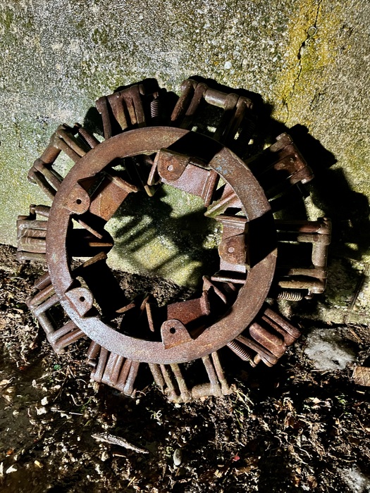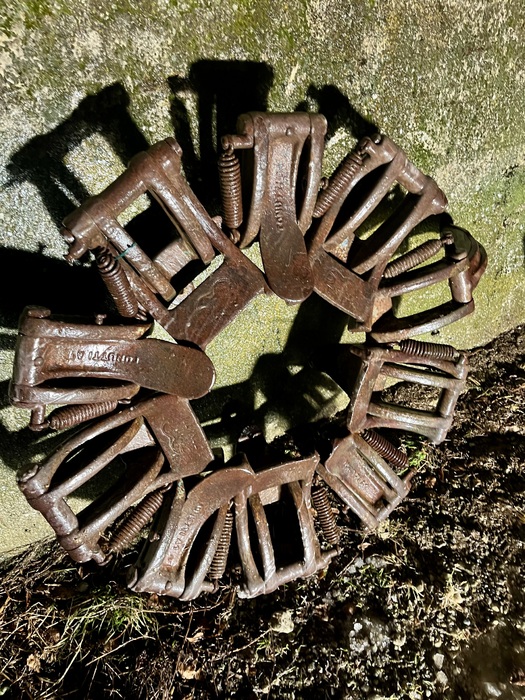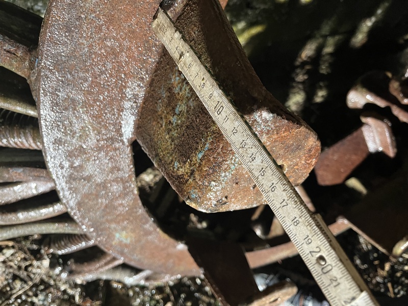Zustand siehe Bilder, alle Schaufeln beweglich und intakt. Bei einer Schaufel ist die Feder gerissen. Der weißliche Überzug / ist gefrorenes Wasser.