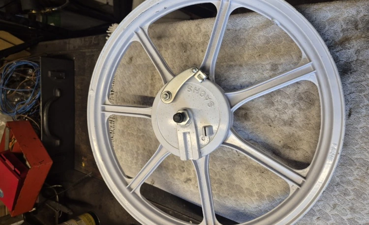 Ich biete eine Grimeca-Vorderrad-Felge einer GT zum Kauf an. Bin mir aber nicht sicher. Interessenten wissen es ev. besser. Die Felge wurde nie benutzt, deshalb NOS. Sie ist komplett mit Achse und der Bremse. Größe. 1,6x17", Bj. ca.1996. Siehe Bilder.