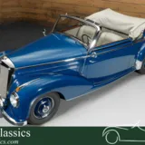 Mercedes-Benz 220 A Cabriolet | Umfangreich restauriert | 1 von 1.278 gebauten Exemplaren | 1951 Highlights: – Sehr guter Zustand – Fotobericht der Restaurierung verfügbar – Nur 1.278 Exemplare gebaut – 2,2-Liter-Sechszylinder-Motor Umfangreich restauriertes Mercedes-Benz 220 A Cabriolet zu verkaufen Das Mercedes-Benz 220 A Cabriolet von 1951 ist eine Ikone der frühen Nachkriegszeit der Marke. Ausgestattet mit einem 2,2-Liter-Sechszylinder-Motor und einem 4-Gang-Schaltgetriebe bot dieses Modell damals eine beeindruckende Kombination aus Leistung und Laufruhe. Nur 1.278 Exemplare wurden gebaut, was dieses Auto heute zu einem äußerst seltenen Sammlerstück macht. Dieses besondere Exemplar wurde umfassend restauriert und wird mit einem Fotobericht der Restaurierung geliefert, der die Sorgfalt und Aufmerksamkeit, die diesem Klassiker gewidmet wurde, deutlich zeigt. Dank seiner reichen Geschichte und Exklusivität lässt dieses Auto die Herzen von Liebhabern höher schlagen. Dunkelblaues Mercedes-Benz 220 A Cabriolet Dieses 220 A Cabriolet strahlt pure Klasse aus. Der elegante blaue Lack harmoniert perfekt mit dem beigen Stoffverdeck und der stilvollen beigen Lederausstattung. Die klassischen Mercedes-Details wie die Chromleisten und die Originalfelgen unterstreichen den authentischen Charakter dieses besonderen Cabriolets. Das Zusammenspiel zwischen dem frischen Interieur und der tief glänzenden Karosserie macht dieses Fahrzeug zu einem zeitlosen Klassiker in ausgezeichnetem Zustand – ein wahres Fahr- und Sehvergnügen. Sie möchten ein Mercedes-Benz 220 A Cabriolet kaufen? Sie suchen ein Mercedes-Benz 220 A Cabriolet von 1951? Dann hinterlassen Sie Ihre Daten über das Kontaktformular auf dieser Seite oder rufen Sie uns direkt unter +31 416 751 393 an. Unsere Vertriebsmitarbeiter beantworten gerne Ihre Fragen und erstellen Ihnen ein individuelles Verkaufsvideo. Wir bieten Unterstützung beim Transport. Wir liefern Ihnen Ihr Auto mit Tüv, H-Kennzeichen und Fahrzeugbrief, gegen Aufpreis. Sie zahlen keine Importsteuer mehr. Auch können Sie das Fahrzeug bei unsere Finanzierungspartner finanzieren.
