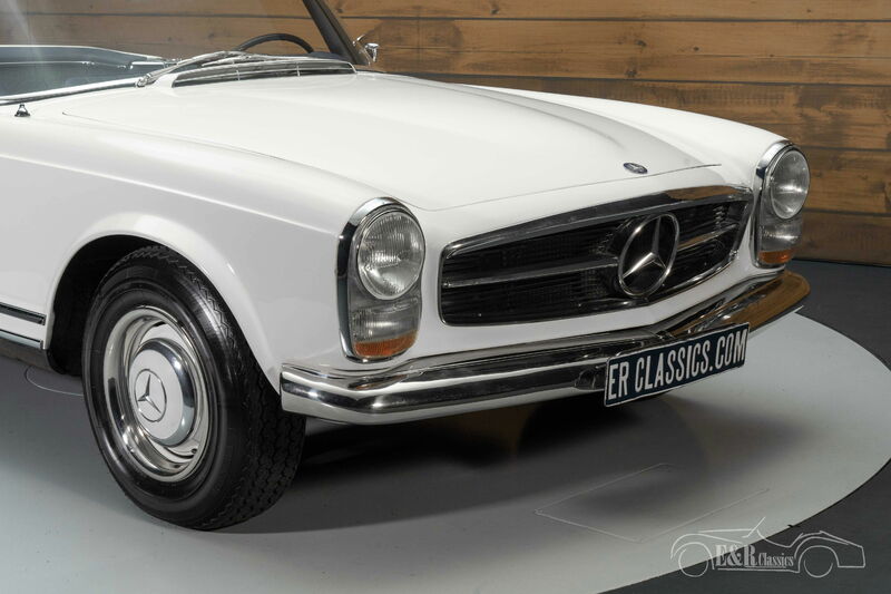 Mercedes-Benz 230 SL | Neue Innenausstattung | Guter Zustand | 1964 Höhepunkte: - Guter Zustand - Neue Innenausstattung - 2300 cc 6-Zylinder-Motor - 4-Gang-Schaltgetriebe - Schwarzes Verdeck Mercedes-Benz 230 SL in gutem Zustand zu verkaufen Wir bieten diesen wunderschönen Mercedes-Benz 230 SL aus dem Baujahr 1964 zum Verkauf an. Die Pagode stammt von einem Stammkunden von ER Classics und wurde in der Vergangenheit hobbymäßig restauriert. Sowohl optisch als auch technisch ist der Mercedes-Benz in einem guten Zustand. Es wird von einem 2300 ccm 6-Zylinder-Motor angetrieben, der mit einem 4-Gang-Schaltgetriebe gekoppelt ist. Mercedes-Benz 230 SL mit neuer Innenausstattung zu verkaufen Der Mercedes-Benz 230 SL Pagode, den wir hier zum Verkauf anbieten, hat eine schöne weiße Lackierung, die sehr gut mit den lackierten Rädern und dem Chrom harmoniert. Es hat ein schwarzes Stoffverdeck, das Sie im Handumdrehen zusammenfalten können, damit Sie auf Tour die Sonne genießen können. Die dunkelblaue Innenausstattung wurde kürzlich erneuert und hebt sich schön von der weißen Farbe ab. Kurz gesagt, eine wunderschöne Pagode, die für ihren neuen Besitzer bereit ist. Sie möchten einen Mercedes-Benz 230 SL kaufen? Suchen Sie einen Mercedes-Benz 230 SL von 1964? Dann hinterlassen Sie Ihre Daten über das Kontaktformular auf dieser Seite oder rufen Sie direkt +31 416 751 393 an. Unsere Verkaufsmitarbeiter beantworten gerne alle Ihre Fragen oder erstellen sogar ein persönliches Shop-Video für Sie. Wir bieten Unterstützung beim Transport. Wir liefern Ihnen Ihr Auto mit Tüv, H-Kennzeichen und Fahrzeugbrief, gegen Aufpreis. Sie zahlen keine Importsteuer mehr. Auch können Sie das Fahrzeug bei unsere Finanzierungspartner finanzieren.