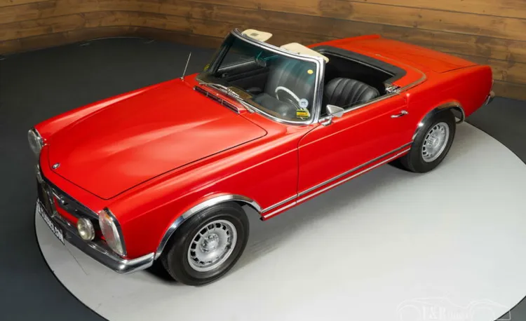 Mercedes-Benz 280 SL | Restauriert | Hardtop | 1968 Highlights: - Vorher restauriert - Hardtop vorhanden - Lackierung in Signalrot - 2,8-Liter-Sechszylinder mit Automatikgetriebe Restaurierter Mercedes-Benz 280 SL zu verkaufen Der Mercedes-Benz 280 SL von 1968 gehört zur legendären Baureihe W113, besser bekannt als „Pagode“. Dieses Modell ist bekannt für sein zeitloses Design, seine hochwertige Technik und seinen außergewöhnlichen Fahrkomfort. Unter der Haube arbeitet der kraftvolle 2,8-Liter-Reihensechszylinder, der in Kombination mit einem Automatikgetriebe für sanfte Fahrleistungen und ein entspanntes Fahrgefühl sorgt. Der 280 SL war zu seiner Zeit ein technisches Meisterwerk und wurde für seine Zuverlässigkeit und sein luxuriöses Erscheinungsbild gelobt. Dieses Exemplar wurde in der Vergangenheit restauriert, was zu seinem gepflegten und authentischen Erscheinungsbild beiträgt und gleichzeitig den Charakter dieses klassischen Mercedes bewahrt. Mercedes-Benz in Signalrot zu verkaufen Die elegante Lackierung in Signalrot unterstreicht die stilvolle Linienführung der Pagode. Die begehrten Kronkorkfelgen und die Frontscheinwerfer betonen dezent den sportlichen Charakter. Schwarzes Stoffverdeck und passendes Hardtop sind im Preis inbegriffen, sodass der Wagen für jede Jahreszeit geeignet ist. Der Innenraum ist stilvoll und einladend, mit schwarzem Leder, das einen schönen Kontrast zum roten Lack bildet. Das klassische Becker Monza Radio unterstreicht den originalen Look und die Liebe zum Detail. Exterieur und Interieur bilden zusammen ein harmonisches Ganzes und machen diesen 280 SL zu einem besonders attraktiven Klassiker. Sie möchten einen Mercedes-Benz 280 SL kaufen? Suchen Sie einen Mercedes-Benz 280 SL aus dem Jahr 1968? Dann hinterlassen Sie Ihre Kontaktdaten auf dieser Seite oder rufen Sie uns direkt unter +31 416 751 393 an. Unsere Verkaufsberater beantworten gerne Ihre Fragen und erstellen Ihnen auf Wunsch ein individuelles Shopping-Video. Wir bieten Unterstützung beim Transport. Wir liefern Ihnen Ihr Auto mit Tüv, H-Kennzeichen und Fahrzeugbrief, gegen Aufpreis. Sie zahlen keine Importsteuer mehr. Auch können Sie das Fahrzeug bei unsere Finanzierungspartner finanzieren.