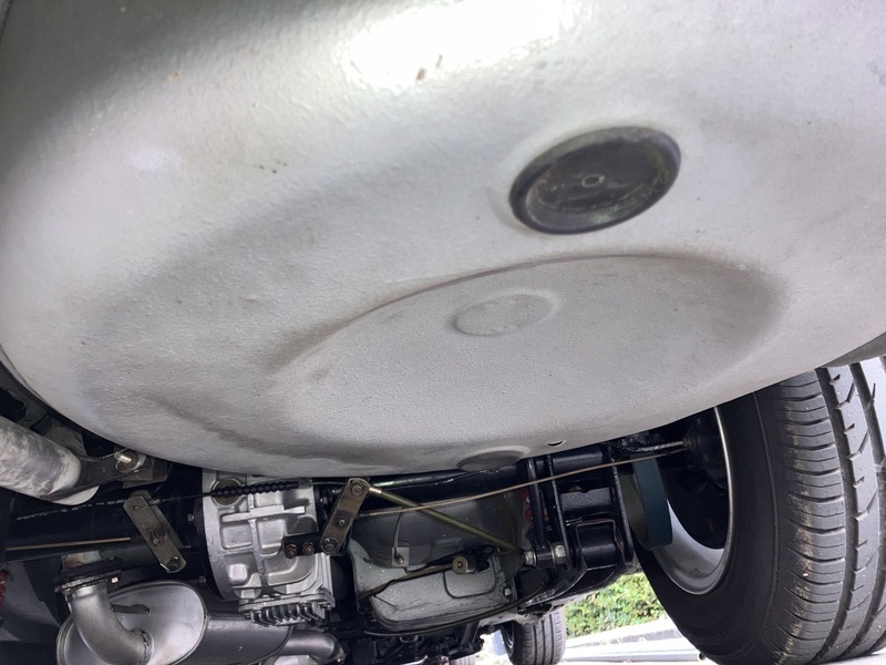Der Unterboden ist lackiert und nicht mit schwarzer Pampe verschmiert. Auspuff natürlich auch erneuert.