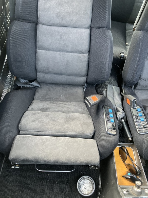 2. Recaro Phonic Sitze. Diese Sitze wurden 1979 eingebaut und waren damals das Beste vom Besten was es bei Recaro gab. Die Wangen von Sitzfläche und Lehne sind in der Breite einstellbar, aufblasbare 3-Zonen Lordosenstütze, Sitzheizung, verstellbare Beinauflage und elektrische Lehnenverstellung.