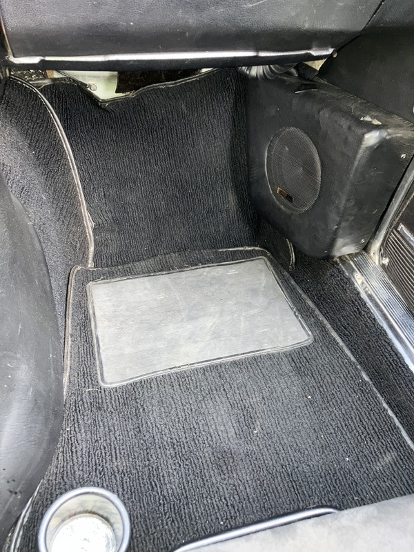 Türverkleidung und Teppich sind original erhalten. Die Holzverkleidungen habe ich neu angefertigt. Die vorderen Kartentaschen sind durch Boxenkästen ersetzt, sind aber jederzeit durch die originalen Taschen rückrüstbar/vorhanden.