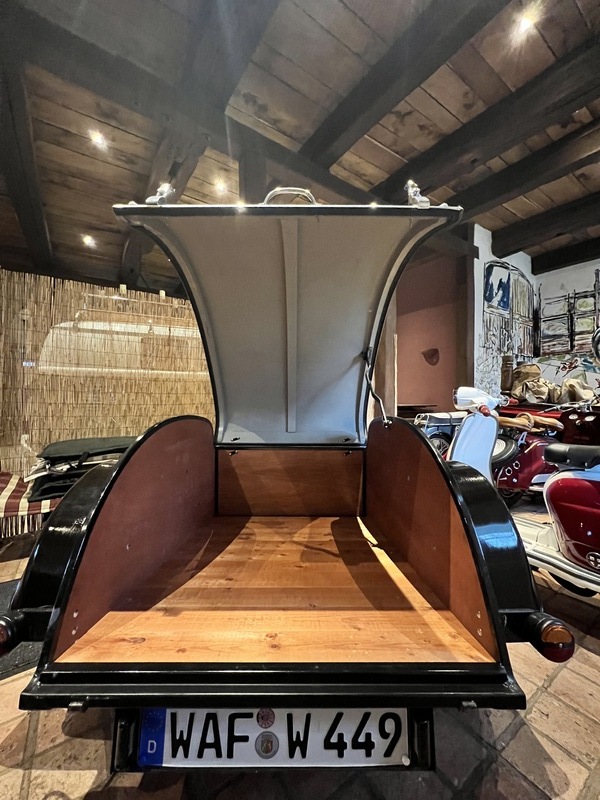 Liebhaber aufgepasst: Wir bieten diesen schönen VW Westfalia-Werke Trailer aus dem Jahr 1949 zum Verkauf an. Der Trailer wurde aufwendig restauriert und befindet sich in einem Top-Zustand. Dies ist ein einachsiger Anhänger. Das Verdeck trägt den zeitgemäßen Westfalia-Slogan und ist zudem abschließbar.