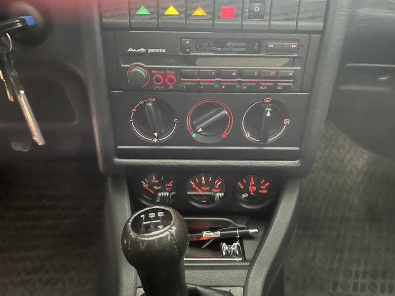 Interieur: Sportsitze in Satin-Stoff mit Quattro-Schriftzug und originaler Kassettenablage