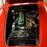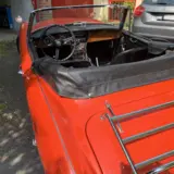 Auch der Innenraum ist original: schwarzes Lederinterieur, Holzarmaturenbrett und Holzsportlenkrad sorgen für den typischen britischen Roadster-Charme. Das Leder zeigt altersbedingt eine ehrliche Patina, die dem Fahrzeug Charakter verleiht. Das Holz ist in einwandfreien Zustand.
