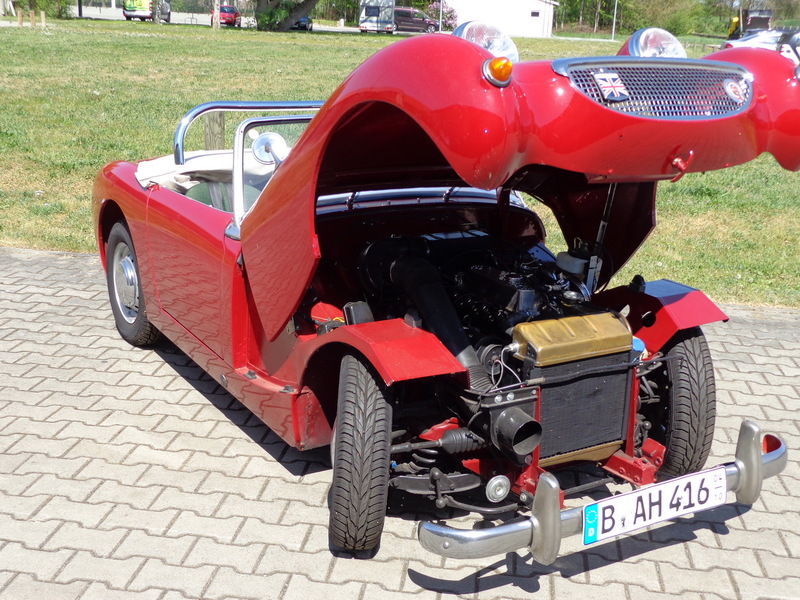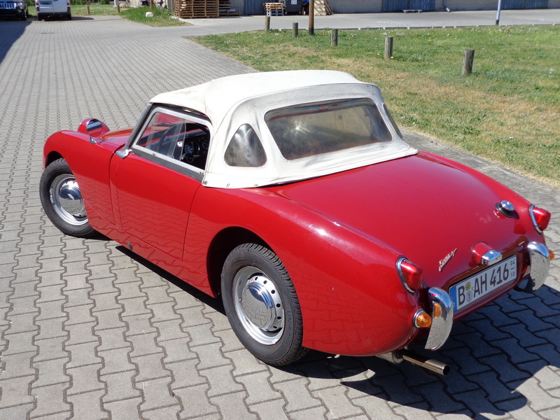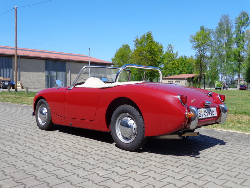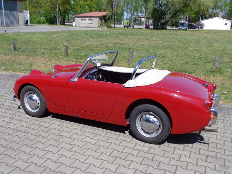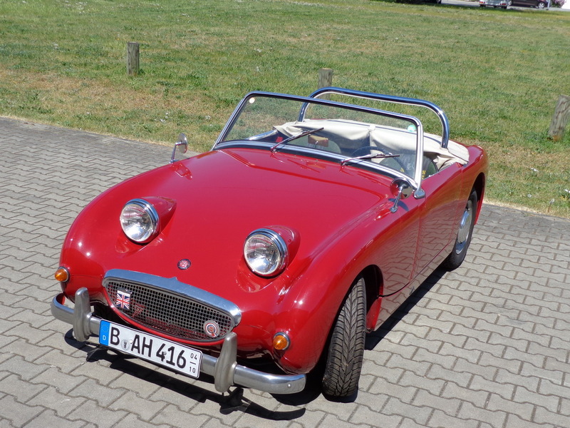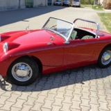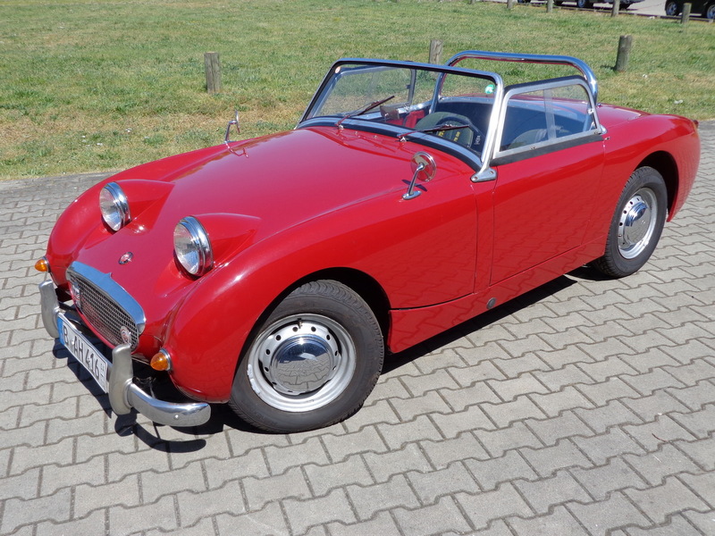 Aus gesundheitlichen Gründen muss ich mich schweren Herzens von meinem Austin Healey Sprite MK I, Baujahr 1960 trennen. Das Fahrzeug befindet sich seit 1991 in meinem Besitz. Im Jahr 1991/92 habe ich das Auto komplett restauriert, den Unterboden und den Innenraum habe ich bis auf das blanke Blech freigelegt und ihn dann mit einer speziellen Tankschutzfarbe gestrichen, anschließend wurde das komplette Fahrzeug, Innen, Außen und der Unterboden in Wagenfarbe lackiert. Des Weiteren wurden sämtliche Teile überholt. Die Hebelstoßdämpfer wurden durch verstellbare AVO Stoßdämpfer ersetzt und eine Edelstahl Auspuffanlage eingebaut. Der Motor mit wurde vom Vorgänger leicht modifiziert, läuft super und ist mit ca. 60 PS standfest, so dass ich fast jedes Jahr zum Nürburgring zu den Austin Healey Club Germany Treffen zur Eifelklassik problemlos auf eigene Achse fuhr. Bei dem Getriebe handelt es sich um das gerippte Getriebe, ein zweites geripptes Getriebe plus einem Panhardstab gibt es dazu.