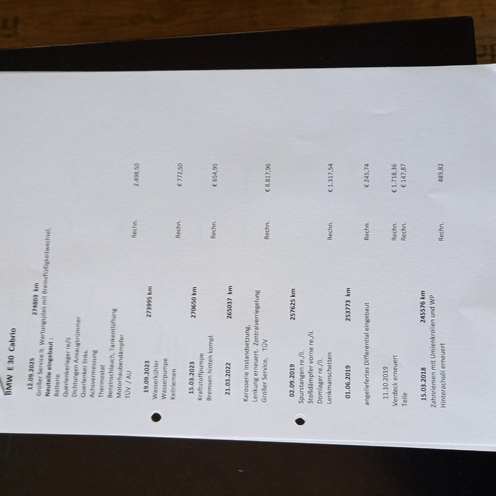 Sehr schönes 6 Zylinder Cabrio mit H-Kennzeichen in wirklich gutem Zustand. Fahrzeug wurde ohne Rücksicht auf Kosten regelmäßig gewartet, restauriert bzw. repariert. Rechnungen seit 2017 in Höhe von € 19.800,00 liegen vor. Aktuell wid noch der Zahnriemen erneuert und ein Gutachten für H-Kennzeichen erstellt. Kein Wartungsstau, aktueller Service und TÜV neu. Bei interesse melden Sie sich bitte, gerne telefonisch 01727384033. Probefahrt mit rotem Kennzeichen bei gutem Wetter möglch. Gerne dürfen Sie das Fahrzeug auf der Hebebühne besichtigen.