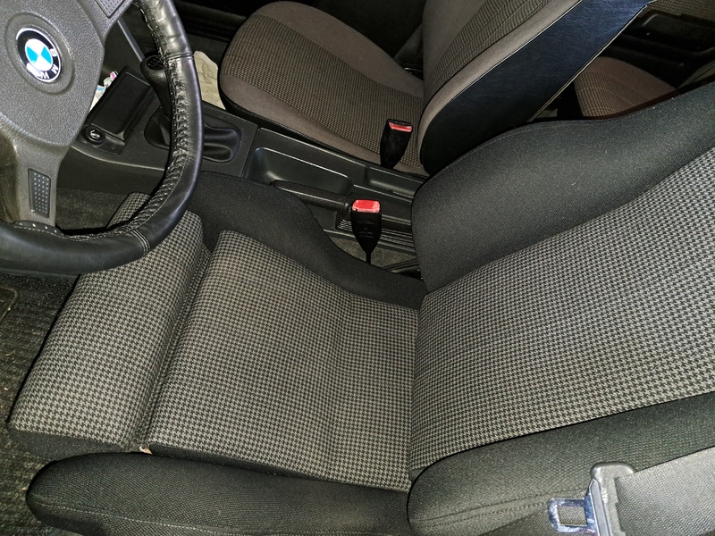 Mit BMW Original Autostoff die Mittelbahn des orthopäd-Sportsitzes erneuert und Polsterung überarbeitet