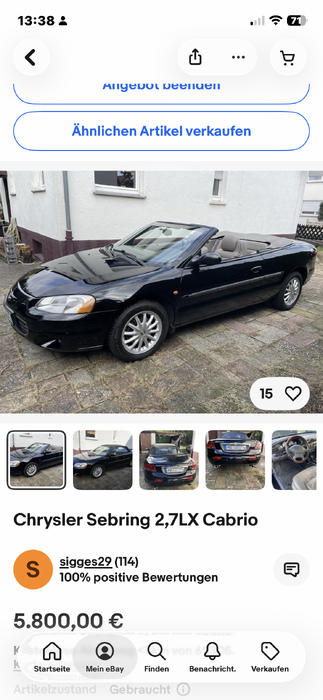 Chrysler Sebring 2,7 LX Cabrio, schwarz, neue Reifen, Stoßdämpfer vorn und hinten neu, Doppelrohr Sportauspuff mit ABE, neue Querlenker vorn, Leder beige,  sehr gepflegt, kein Rost, Garagenwagen, wegen Krankheit zu verkaufen.