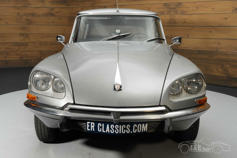 Citroën DS 23 Pallas | Restauriert | Citromatic Halbautomatik | 1973 Highlights: – Restauriert 2003 – 22 Jahre in erster Hand – 2.3-Liter-Vierzylindermotor – Halbautomatisches Citromatic-Getriebe – Luxus-Pallas-Version Restaurierter Citroën DS 23 Pallas zu verkaufen Der Citroën DS 23 Pallas von 1973 ist einer der fortschrittlichsten Klassiker aller Zeiten – eine Kombination aus bahnbrechender Technologie und zeitloser Eleganz. Diese Version ist mit dem leistungsstarken 2.3-Liter-Vierzylindermotor und dem charakteristischen halbautomatischen Citromatic-Getriebe ausgestattet, das ein unvergleichliches Fahrerlebnis garantiert. 2003 wurde dieser DS restauriert und befindet sich seit 22 Jahren im Besitz desselben Besitzers – ein Beweis für die Sorgfalt und Hingabe, mit der er gepflegt wurde. Als Topmodell der DS-Reihe besticht der Pallas durch luxuriöse Details und fortschrittliche Technologie, wie das berühmte Fahrwerk und den einzigartigen Pilzkopf-Bremshebel. Citroën DS 23 Pallas mit Citromatic-Getriebe zu verkaufen Der silbergraue Lack harmoniert perfekt mit der eleganten Karosserieform und lässt die stromlinienförmigen Linien optimal zur Geltung kommen. Die originalen Radkappen und edlen Chrom-Akzente verleihen dem Fahrzeug seinen klassischen Look. Auch der Innenraum strahlt Charakter aus: Die schwarze Lederausstattung weist eine wunderschöne Patina auf, die die reiche Geschichte dieses Fahrzeugs widerspiegelt. Das charakteristische Einspeichenlenkrad und die edlen Türverkleidungen runden das harmonische Zusammenspiel von Innen und Außen ab. Eine seltene Kombination aus Stil, Technologie und Geschichte – bereit für einen Liebhaber mit einem Auge für Originalität. Citroën DS 23 Pallas kaufen? Suchen Sie einen Citroën DS 23 Pallas von 1973? Dann hinterlassen Sie Ihre Daten über das Kontaktformular auf dieser Seite oder rufen Sie uns direkt unter +31 416 751 393 an. Unsere Verkäufer beantworten gerne alle Ihre Fragen und erstellen Ihnen gerne ein persönliches Verkaufsvideo. Wir bieten Unterstützung beim Transport. Wir liefern Ihnen Ihr Auto mit Tüv, H-Kennzeichen und Fahrzeugbrief, gegen Aufpreis. Sie zahlen keine Importsteuer mehr. Auch können Sie das Fahrzeug bei unsere Finanzierungspartner finanzieren.