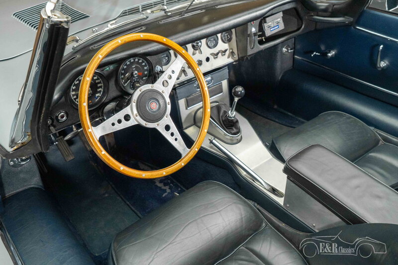 Jaguar E-Type Serie 1 3.8 Cabriolet | Matching Numbers | 1961 Highlights: - Matching Numbers 3,8-Liter-Sechszylinder-Motor mit 3 SU H8-Vergasern - Ältere Restauration - Mohair-Verdeck in gutem Zustand mit Abdeckung - Upgrades: Aluminiumkühler, elektronische Zündung, zusätzlicher Lüfter und Edelstahl-Auspuffanlage Jaguar E-Type Serie 1 3.8 Cabriolet mit Matching Numbers zu verkaufen Das Jaguar E-Type Serie 1 3.8 Cabriolet von 1961 gehört zur allerersten Generation dieses legendären Modells und gilt weltweit als einer der kultigsten Sportwagen aller Zeiten. Dieser frühe offene Zweisitzer ist mit dem charakteristischen 3,8-Liter-Reihensechszylinder-Motor mit drei SU H8-Vergasern ausgestattet, der mit einem 4-Gang-Schaltgetriebe gekoppelt ist und die Hinterräder antreibt. Es handelt sich um ein Matching-Numbers-Exemplar, das in der Vergangenheit restauriert wurde, wobei sowohl technische als auch kosmetische Arbeiten durchgeführt wurden. Darüber hinaus wurden mehrere durchdachte Verbesserungen vorgenommen, wie beispielsweise ein Aluminiumkühler, eine elektronische Zündung, ein zusätzlicher Lüfter und eine Edelstahl-Auspuffanlage, die zu verbesserter Zuverlässigkeit und einem optimierten Fahrgefühl beitragen. Das Fahrzeug befindet sich seit längerer Zeit im Besitz desselben Eigentümers und ist in einem guten, fahrbereiten Zustand. Silbergraues Jaguar E-Type Series 1 3.8 Cabriolet zu verkaufen Die Karosserie wurde im Zuge der Restaurierung neu lackiert und präsentiert sich mit einem schönen Glanz und einer gleichmäßigen Farbgebung, ergänzt durch leichte Gebrauchsspuren, die auf eine ältere Restaurierung hinweisen. Die Karosserie zeichnet sich durch enge Spaltmaße aus, und das Chrom präsentiert sich in einem gepflegten Zustand mit dezenter Patina. Die klassischen und zeitlosen Linien des E-Type kommen dank der eleganten 72-Speichen-Chromspeichenräder wunderbar zur Geltung. Der Innenraum ist mit blauem Leder, passenden Teppichen und einem schwarzen Armaturenbrett ausgestattet, was einen schönen Kontrast zum Exterieur bildet. Details wie das Moto-Lita-Sportlenkrad und der eingebaute Tripmaster verleihen dem Fahrzeug einen sportlichen und authentischen Charakter. Das Mohair-Verdeck ist in gutem Zustand und wird mit einer Schutzhülle geliefert, sodass Sie stilvoll offen fahren können. Sie möchten ein Jaguar E-Type Series 1 3.8 Cabriolet kaufen? Suchen Sie ein Jaguar E-Type Series 1 3.8 Cabriolet von 1961?Dann hinterlassen Sie Ihre Kontaktdaten auf dieser Seite oder rufen Sie uns direkt unter +31 416 751 393 an. Unsere Verkaufsberater beantworten gerne alle Ihre Fragen und erstellen Ihnen auf Wunsch ein individuelles Video. Wir bieten Unterstützung beim Transport. Wir liefern Ihnen Ihr Auto mit Tüv, H-Kennzeichen und Fahrzeugbrief, gegen Aufpreis. Sie zahlen keine Importsteuer mehr. Auch können Sie das Fahrzeug bei unsere Finanzierungspartner finanzieren.