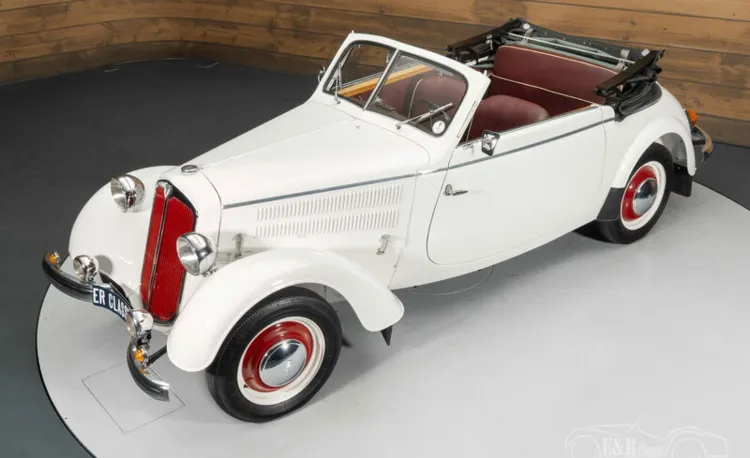 DKW F8 Cabriolet | Umfangreich restauriert | Sehr selten | 1939 Highlights: – Umfangreich restauriert – Sehr seltenes Cabriolet – 700-cm³-Zweizylindermotor – 3-Gang-Schaltgetriebe Umfangreich restauriertes DKW F8 Cabriolet zu verkaufen Das DKW F8 Cabriolet von 1939 ist ein besonderes Exemplar der Automobilgeschichte. Dieses Modell wurde von Auto Union, dem Vorgänger des heutigen Audi, produziert und verbindet zeitlose Eleganz mit der fortschrittlichen Technologie der 1930er Jahre. Unter der Haube arbeitet der 700-cm³-Zweizylindermotor, gekoppelt mit einem 3-Gang-Schaltgetriebe. Auch dieser F8 wurde in der Vergangenheit umfassend restauriert, was seinem historischen Wert voll und ganz gerecht wird. Dank seiner Seltenheit ist ein solches Originalexemplar kaum zu finden, was ihn zu einem echten Sammlerstück macht. Seltenes DKW F8 Cabriolet von 1939 zu verkaufen Dieses Cabriolet strahlt puren Stil und Authentizität aus. Die Karosserie ist in klassischem Weiß mit raffinierten Linien und einem kontrastierenden burgunderroten Interieur gehalten, das zusammen mit dem schwarzen Verdeck ein luxuriöses und warmes Ambiente schafft. Die roten Akzente im Kühlergrill und an den Rädern unterstreichen das unverwechselbare Erscheinungsbild des Fahrzeugs und verleihen ihm einen einzigartigen Charme. Im Innenraum ist die Kombination aus burgunderrotem Leder und klassischen Instrumenten eine stimmungsvolle Anspielung auf das luxuriöse Flair der 1930er Jahre. Ein DKW F8 Cabriolet in diesem Zustand ist ein echter Hingucker für jede Sammlung. DKW F8 Cabriolet kaufen? Suchen Sie ein DKW F8 Cabriolet von 1939? Dann hinterlassen Sie Ihre Daten über das Kontaktformular auf dieser Seite oder rufen Sie uns direkt unter +31 416 751 393 an. Unsere Vertriebsmitarbeiter beantworten gerne alle Ihre Fragen und erstellen sogar ein individuelles Verkaufsvideo für Sie. Wir bieten Unterstützung beim Transport. Wir liefern Ihnen Ihr Auto mit Tüv, H-Kennzeichen und Fahrzeugbrief, gegen Aufpreis. Sie zahlen keine Importsteuer mehr. Auch können Sie das Fahrzeug bei unsere Finanzierungspartner finanzieren.