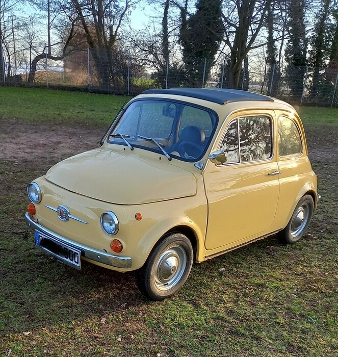 Fiat 500, Baujahr 1972, 18 PS, 66.900 km, Sitze neu in Alcantara, Automatik Dreipunktgurte, Radio, Reifen neu, TÜV 9/27, top gepflegt, fahrbereit, VHB € 8.900,-, Tel. 0172/7236348, Standort Raum Speyer