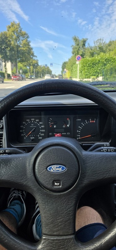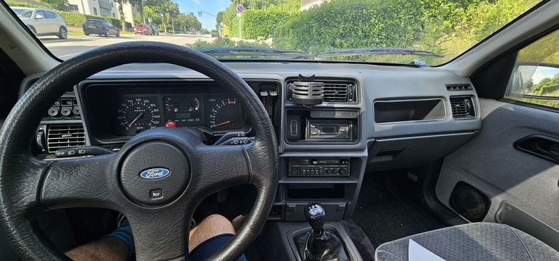 Der Ford ist im Originalzustand und voll ausgestattet, mit Boardcomputer, Lendenwirbelkissen und elektrischen Fenstern. Dazu kommen noch Ford Motorsport RS Felgen die auch in der Motorsportvariante sehr selten sind, sowie ein paar neue Winterreifen.