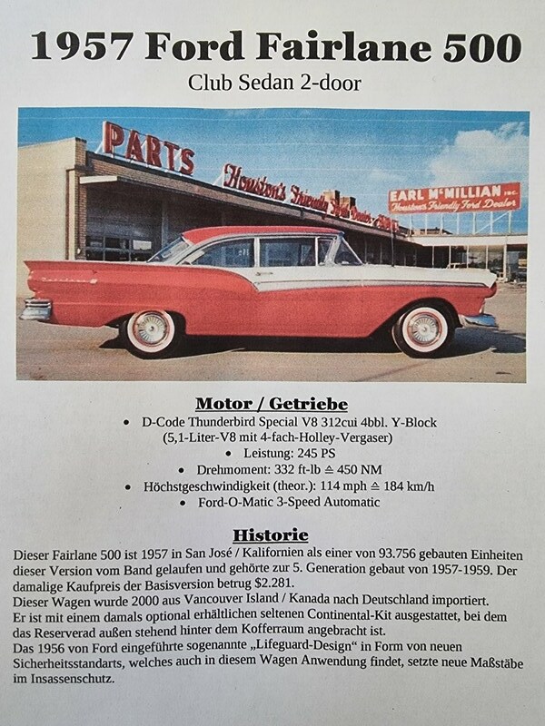 Der Fairlane wurde 2000 aus Vancouver Island/Canada nach Deutschland importiert.