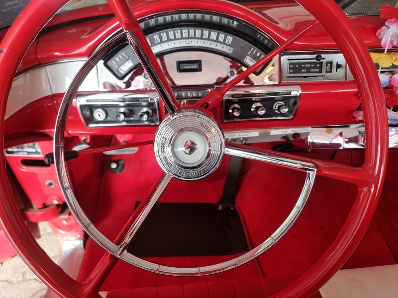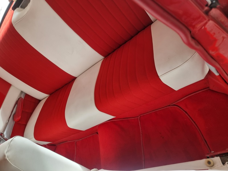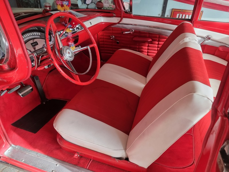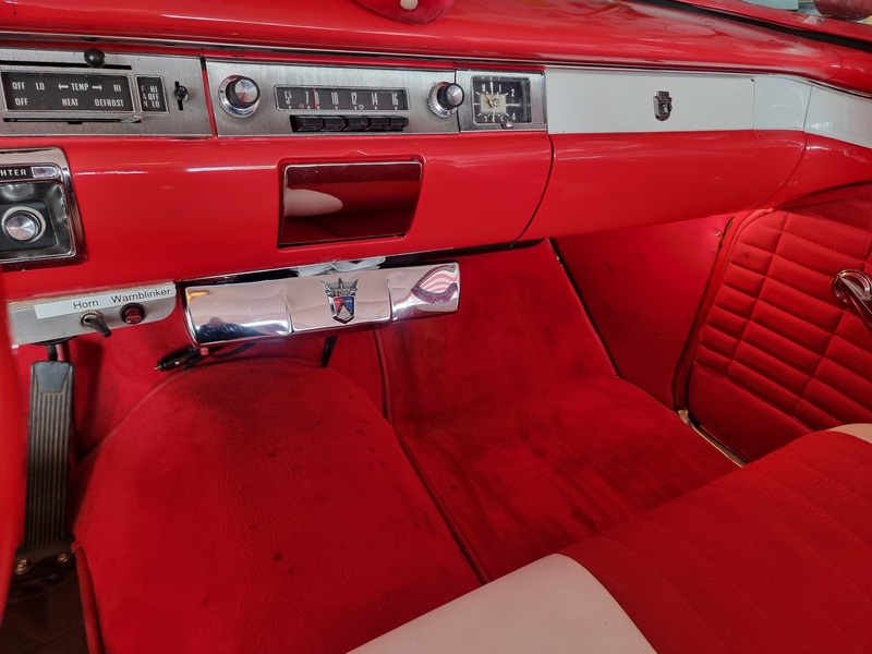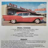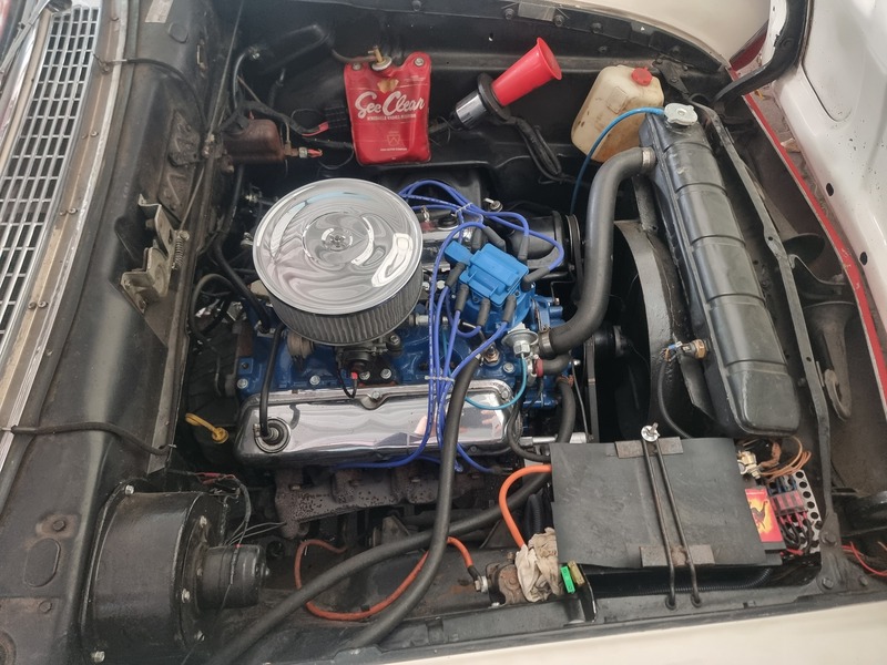 Die rot/weiße Innenausstattung wurde vor über 20 Jahren mal originalgetreu erneuert. Des Weiteren wurde letztes Jahr ein neu aufgebauter 302 cui (5.0l) V8 Ford-Austauschmotor eingebaut. Original war ein 312 cui Thunderbird Special V8-Motor verbaut, welcher aber leider nicht mehr zu retten war. Die Weißwandreifen wurden ebenfalls vor ca. 1,5 Jahren erneuert.