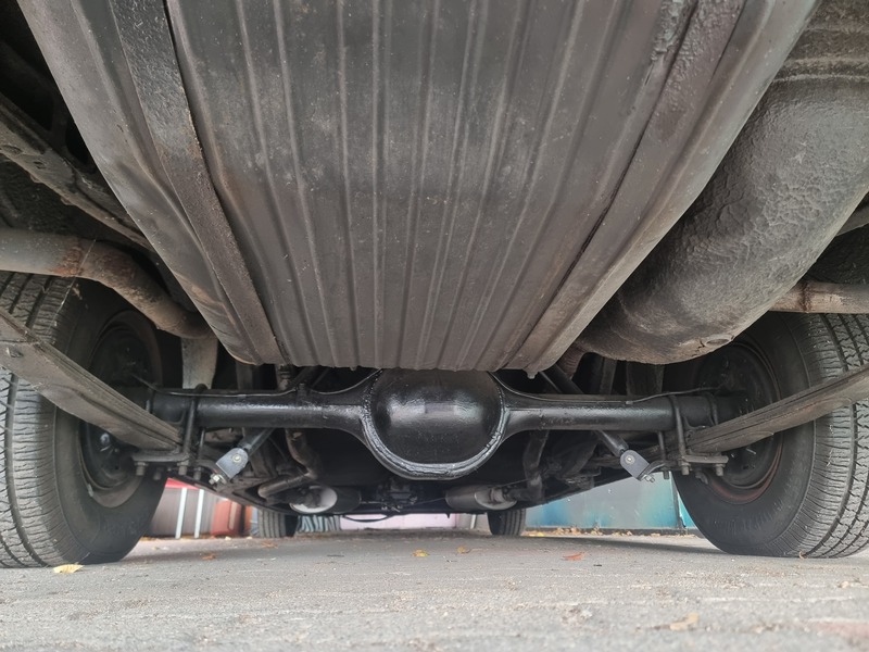 Es sind auch noch die originalen Fender Skirts (hintere Radabdeckungen) vorhanden. Auf den vorderen Kotflügeln sind 2 funktionierende Suchscheinwerfer montiert. Außerdem 2 funktionierende Nebelscheinwerfer. Er besitzt Servolenkung, eine 3-Gang-Automatik und vorn eine durchgehende Sitzbank. Er ist somit für 6 Personen zugelassen.