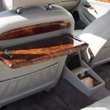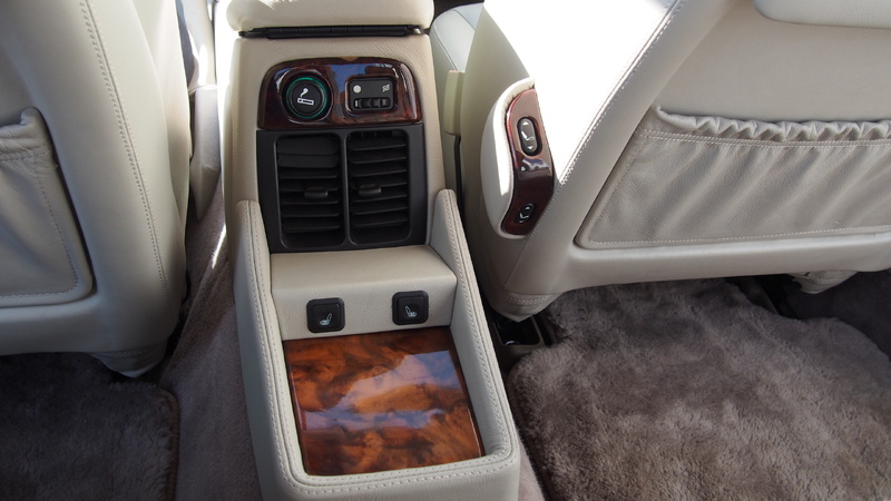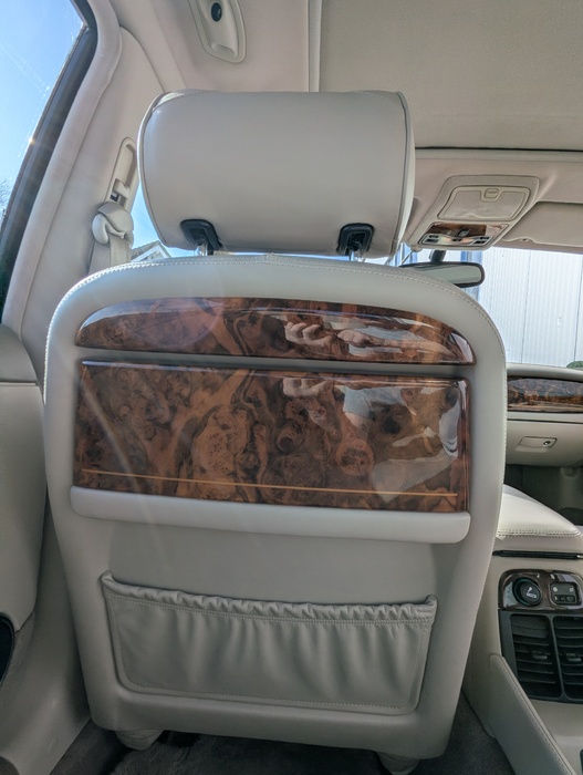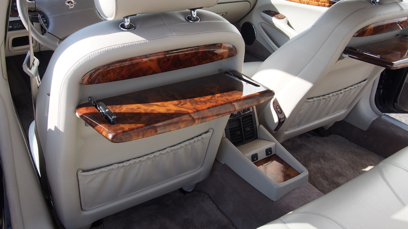 Fond-Luxus: Originale Picknick-Tische aus Walnusswurzelholz an den Rücklehnen sowie Sitzheizung im Fond.