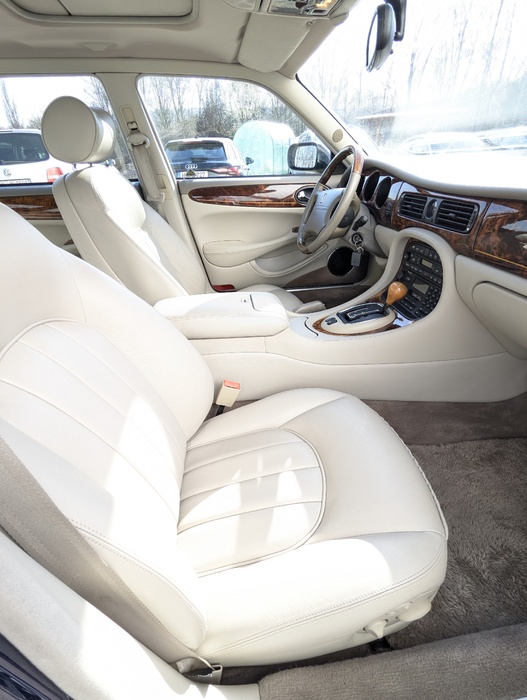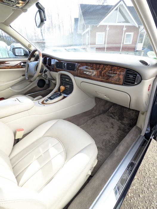 Zum Verkauf steht ein exklusiver Daimler V8 4.0 der Baureihe X308 in der begehrten Original-Farbkombination Sapphire Blue Metallic (JHG) mit einer Innenausstattung in feinstem Leder Oatmeal (AGD) und handverlesenem Walnusswurzelholz.
