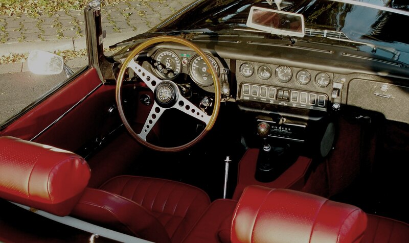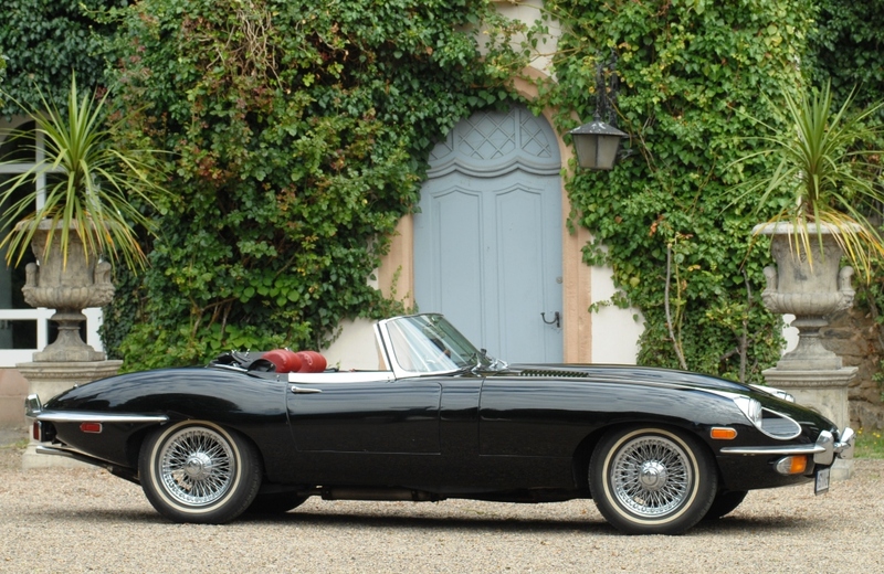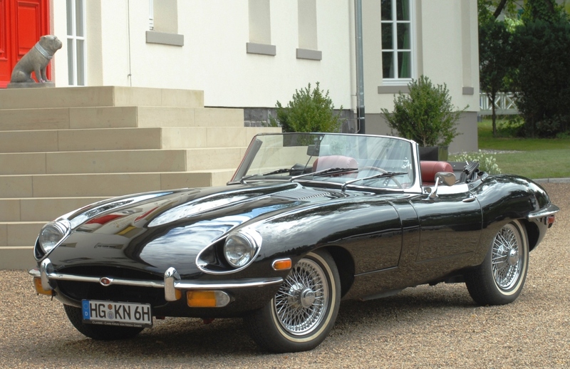 Jaguar E II Cabrio, Bj. 1970, schwarz, innen rotes Leder, Verdeck Sonnenland schwarz neu, Motor nach Komplettüberholung ca. 10.000 km, mit deutschen Rechnungen belegbar, sehr gepflegt, Heritage Certificate, Gutachten über 101.000.-, Preis € 79900.-