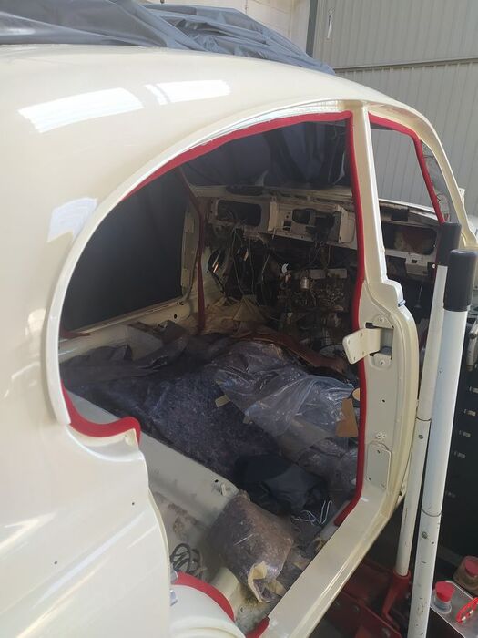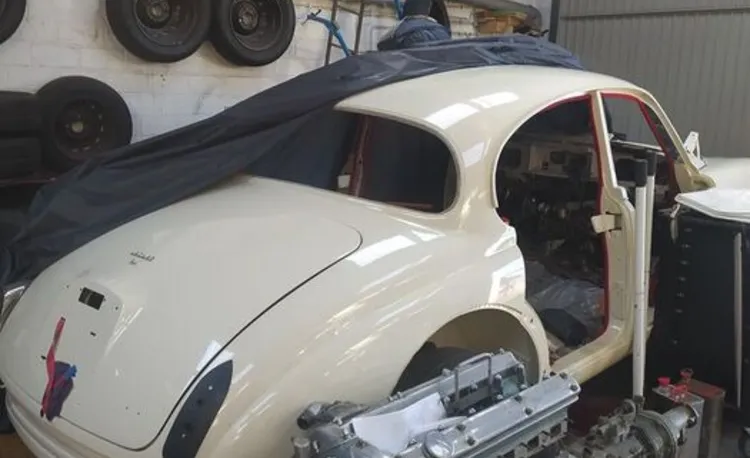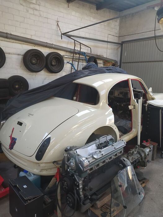 Abgebrochene Restauration. Karosserie, Achsen, Motor und Getriebe kompl.überholt. Motor leider fest. Viele Neuteile. Linkslenker mit Overdrive.
