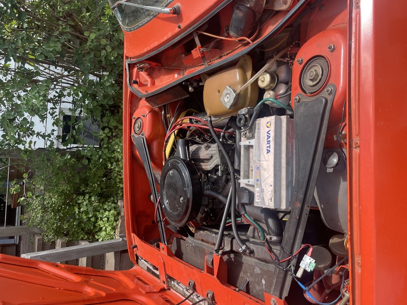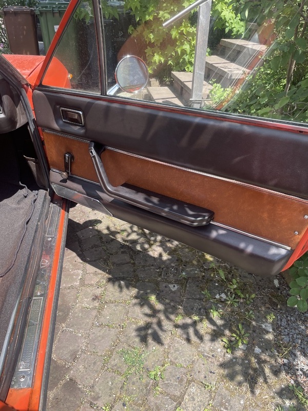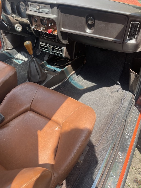 Der Teppich ist leider nicht mehr original, der Fahrersitz ist gut, am Beifahrersitz löst sich eine Naht (wenige cm). Sollte bald gemacht werden, da sie bestimmt weiter aufgehen wird. Zwei kleine Mängel fallen mir noch ein die ich eigentlich über Winter machen wollte, der Thermoschalter an Kühler für den E-Lüfter hängt, der Lüftermotor wird jetzt manuell eingeschaltet, und der Geber für den Öldruck hängt gelengentlich, hatte ich vor Jahren schon mal habe ihn getauscht und es war wieder für Jahre gut. jetzt läuft mir die zeit weg und ich komme nicht mehr dazu.