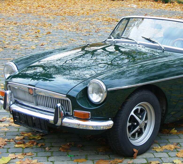 MGB, Roadster, Bj. 70, british racing green, in 2008 vom Fachmann inkl. Motor etc. restauriert, Verdeck neu, Ledersitze, geteilte Stoßstange hinten (so nur 3 Monate gebaut worden), Chrom gut, sehr zuverlässig (2x Italien mit uns), Holzlenkrad, Rostyle Felgen, Preis € 12.900.-