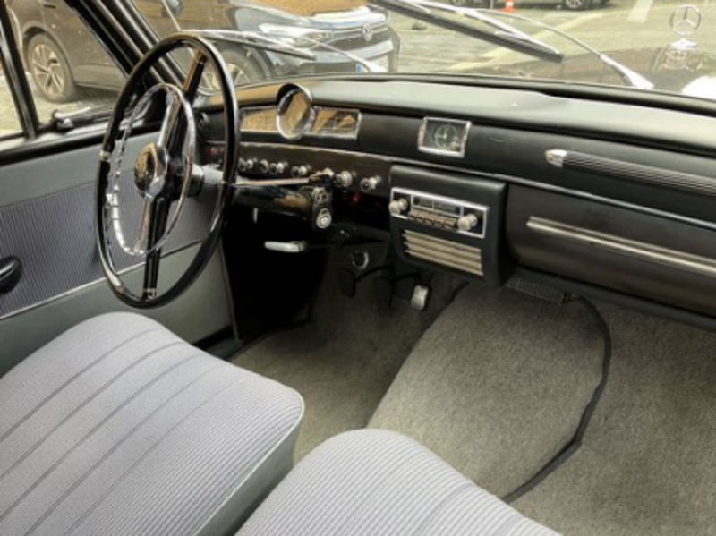 Innen überzeugt der Ponton durch sein klassisches Mercedes-Flair: filigrane Armaturen, große Lenkradnabe und fein verarbeitete Details. Alle Anzeigen und Bedienelemente sind funktionsfähig.