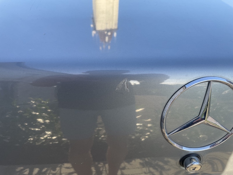 Der Wagen ist rostfrei und sehr gepflegt. Die üblichen Alterungserscheinungen sind durch UV-Einstrahlung eingetreten (Türpappen und Armaturenbrett) und eine Delle sowie drei Kratzer sind in dem Kofferraumdeckel vorhanden.