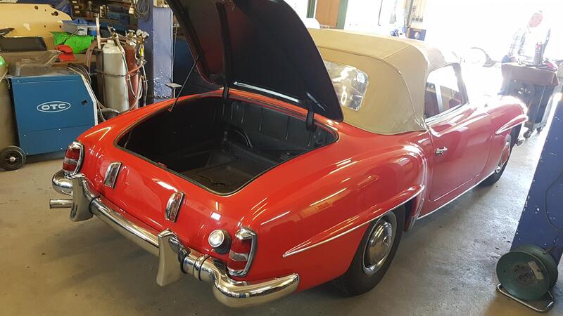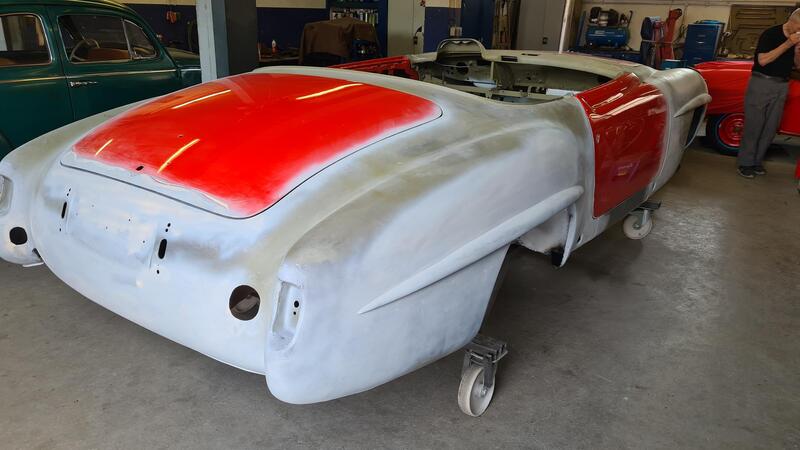 Karosse wurde komplett zerlegt, 2 mal sandgestrahlt, geschweißt, teilweise lackiert