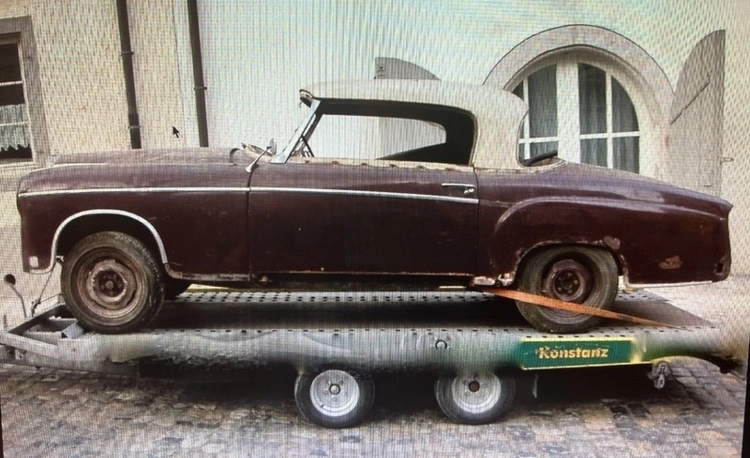 BJ 1960 einer der wenigen, absolut lohnenswertes Reataurationsobjekt, originaler Zustand, seit 1970 stillgelegt, Motordefekt, teilzerlegt, rollbar, vollständig, innen hervorragend Lederschwarz / Palisander.