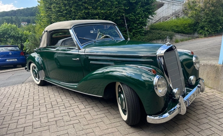 Mercedes 220 Cabrio A, Bj.53, Leder, top Zustand, nach Restaurierung nur 17.500 km gefahren, H-Kennzeichen, seltenes Becker Monaco Radio (rund), nach 40 Jahren altersbedingt zu verkaufen, VB € 139.000,-, Tel. 0174/6446600