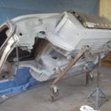 Die Karosse wurde entlackt, mit vielen neuen Blechteilen neu aufgebaut,