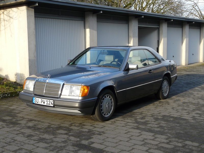 300 CE-24 Coupe W124, EZ 03/1990, perlmuttgrau metallic, original 87000 km, TÜV neu, Automatik, Klimaanlage umgerüstet auf neues Kühlmittel, Radio, Vollleder hellgrau, EFH. Ohne Rost und Wartungsstau. Vollständige Unterlagen bis hin zur Original-Rechnung über 92000 DM. Toller Zustand, alles funktioniert einwandfrei. Angemeldet! Tel. 0228 4101672