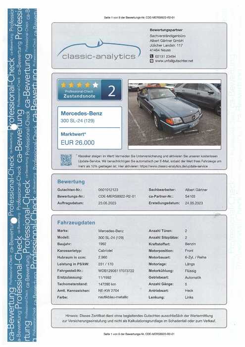 Mercedes -Benz SL 300 / 24V / 231PS/ / Typ R 129 BJ. 1992 UNFALLFREI !!