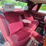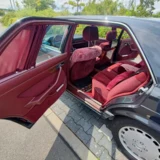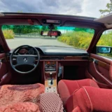 Was diese S-Klasse auszeichnet ist der seidenweiche V8 des 420, der nicht so brachial ist, wie der 560er, sein Vorteil und Charakter der eines fliegenden Teppichs zu vergleichen ist, aber immer mit Reserve. Der Underdog? Sicher. Andere sagen: „Für Kenner. ‚Tür zu, Welt draußen‘, dass was man der S-Klasse nachsagt, trifft hier in besonderem Maße zu. Die mittelrote Veloursausstattung (kostete Aufpreis gegenüber Leder) zeigt keinerlei Abnutzung. Kaum ist die Tür geschlossen, wird man von ihr vereinnahmt. Und möchte man sich ungestört darauf einlassen, Blicke draußen lassen, zieht man einfach die Vorhänge zu, klappt den Picknicktisch runter und lässt sich chauffieren. Aber auch vorne links begeistert dieses Exemplar; man spürt sofort die Erhabenheit und Souveränität, in jeglicher Hinsicht, ein Fahrwerk, was sich auch heute noch nicht verstecken braucht, ein kraftvoller Motor, der die 200 locker knackt, die lange Haube und letztendlich die stetige Präsenz des Sterns, der immer daran erinnert, wo man sich befindet und wie man sich fühlt; himmlich.