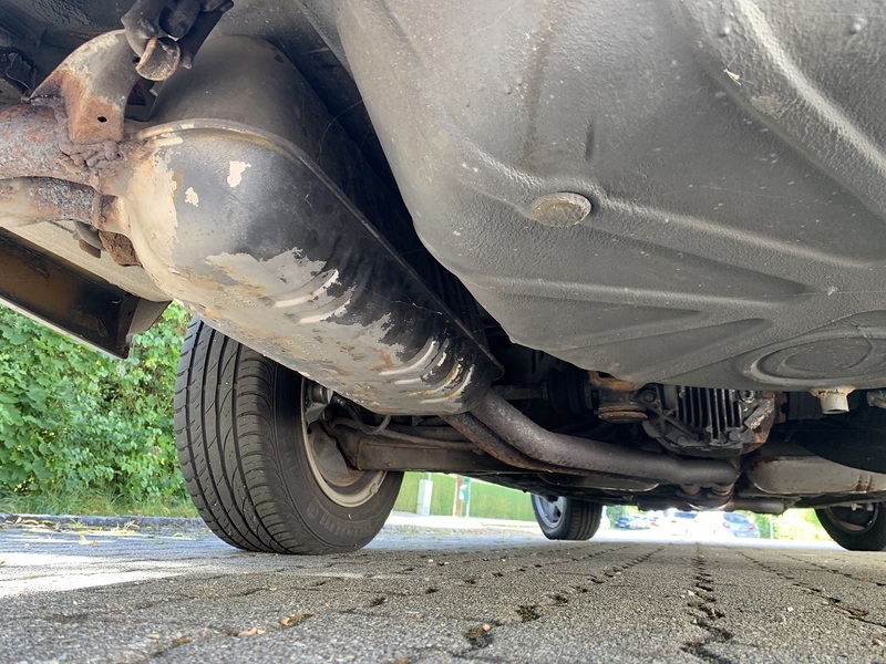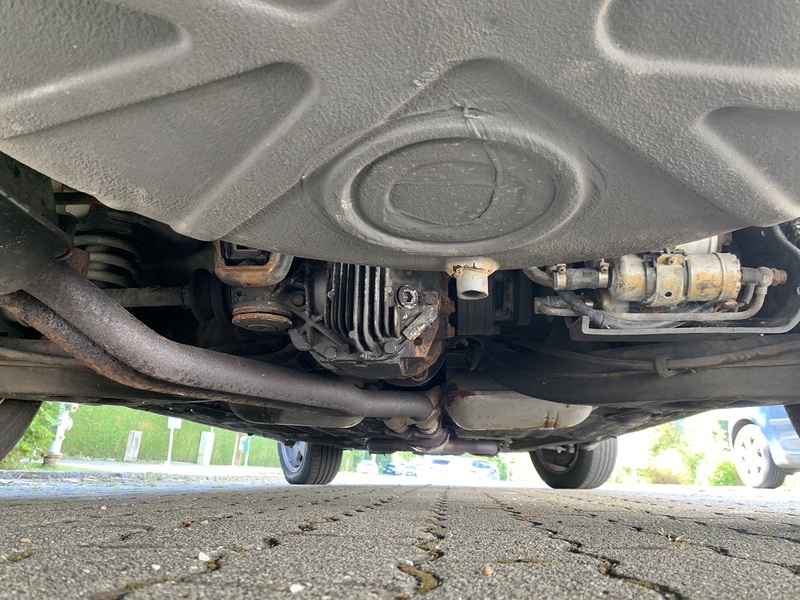 Bitte beachten: unter dem Motorraum des Fahrzeuges findet sich ein kleiner Ölfleck auf dem Garagenboden, der auf mögliche Undichtigkeit hinweist.