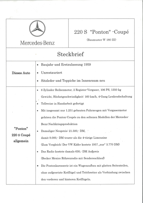 Mercedes-Benz Mercedes Benz 220S Coupe Ponton (Baureihe W180)